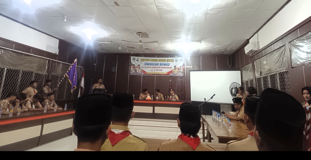 Gapura Suci (MTsN 8 Bungo) – Asisten Pembina Pramuka Madrasah Tsanawiyah Negeri (MTsN) 8 Bungo mengikuti Kursus Mahir Dasar (KMD) bagi Guru, pembina dan calon pembina pramuka penggalang se-Kabupaten Bungo.
