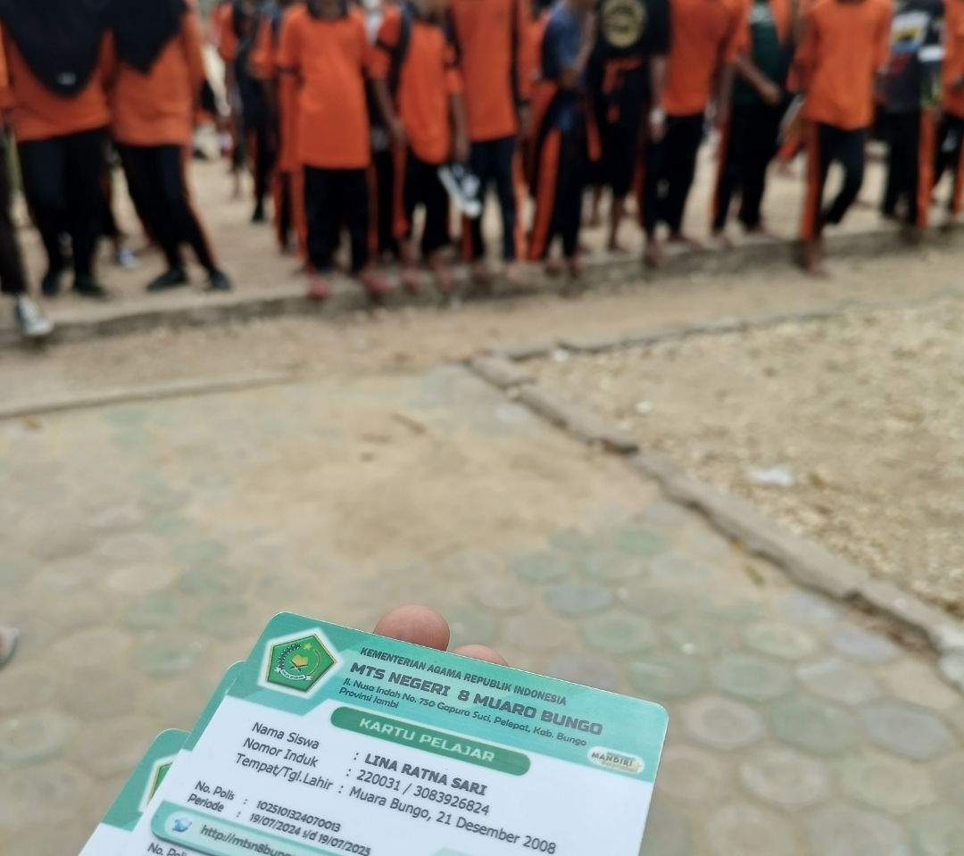 Tepat tanggal 08 Agustus 2024, Kartu Pelajar dengan perlindungan Asuransi jiwa diserahkan Kepada Seluruh siswa/Siswi MTsN 8 Bungo oleh Bapak Enjang, S.Ag.