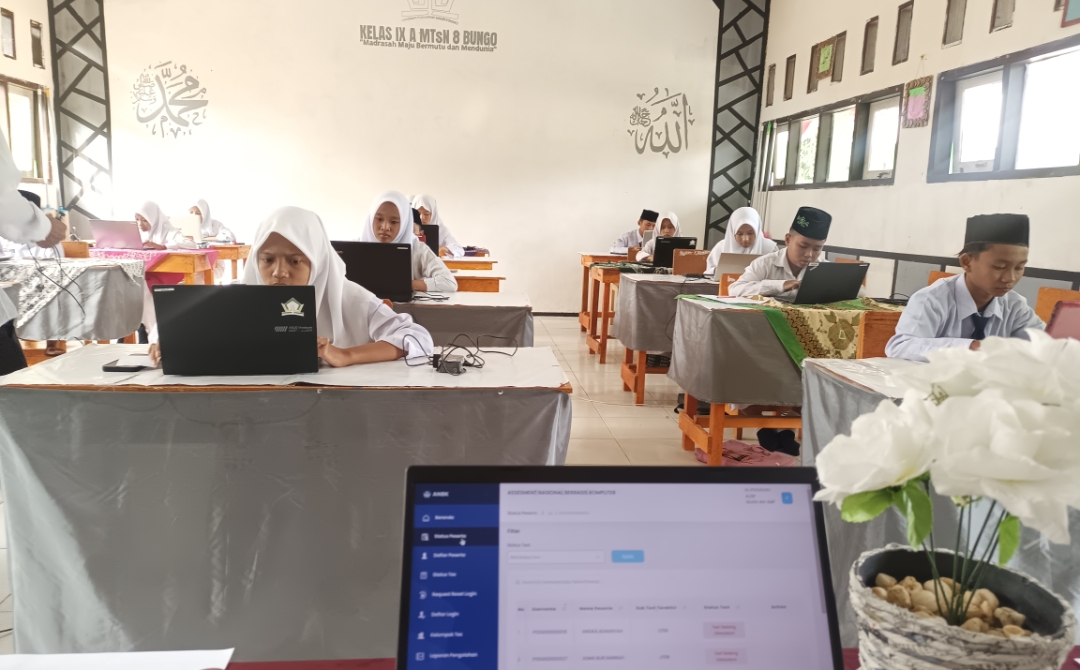 Gapura Suci (MTsN 8 Bungo)- Gladi Bersih Assesmen Nasional Berbasis Komputer (ANBK) Hari Pertama Di Madrasah Tsanawiyah Negeri (MTsN) 8 Bungo Berjalan Dengan Lancar dan terkendali.