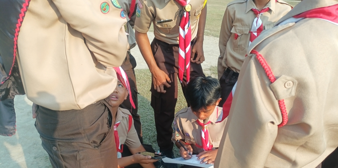 setelah itu anggota Pramuka di persilahkan untuk Ishoma. setelah ishoma anggota Pramuka mempraktekan apa yang telah di dapat pada saat materi di ruangan, dengan membagi menjadi beberapa Kelompok para anggota antusias untuk membuat peta pita dengan kompas.