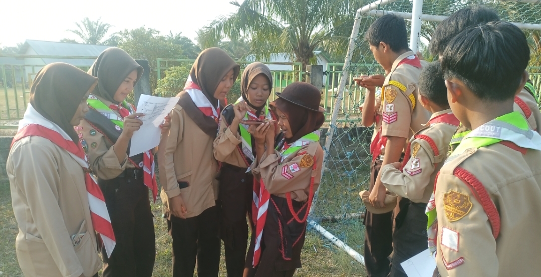 dengan penuh semangat dan antusiasme para anggota Pramuka penggalang MTsN 8 Bungo Berkumpul di Madrasah pada pukul 14.30 Wib. Kegiatan berlangsung di lapangan Madrasah tersebut fokus pada materi pertemuan ke 5 pada semester ini, yakni materi Kompas dan peta Pita.