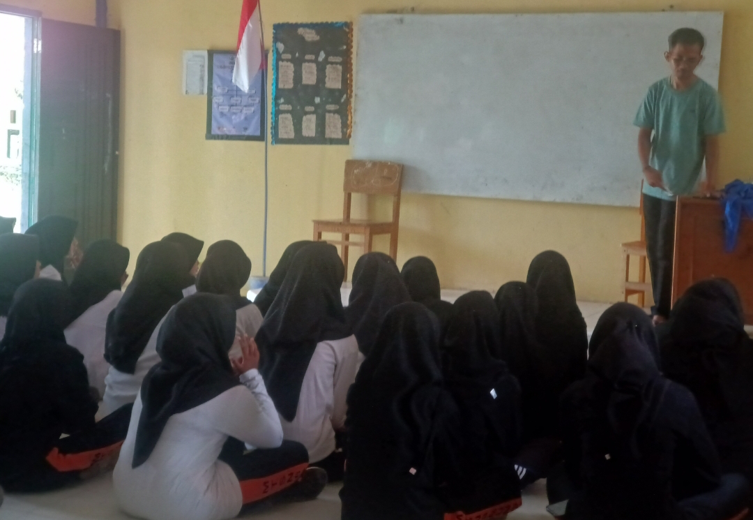 Pembina PMR, Taufik Hidayattulah, S.Si Hadir dengan memberi materi awal mengenai kepalangmerahan yang berlangsung selama dua jam sejak pukul 14.00 hingga 16.00.
