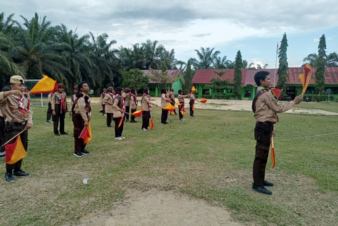 Gapura Suci (MTsN 8 Bungo ) Madrasah Tsanawiyah Negeri (MTsN) 8 Bungo melaksanakan kegiatan latihan rutinitas Pramuka pada hari ini, Jum'at 13/09/2024. dengan penuh semangat dan antusiasme Kegiatan yang berlangsung di lapangan madrasah tersebut fokus pada materi Smapore dan Morse serta penghafalan Dasa Dharma dan Tri Satya.