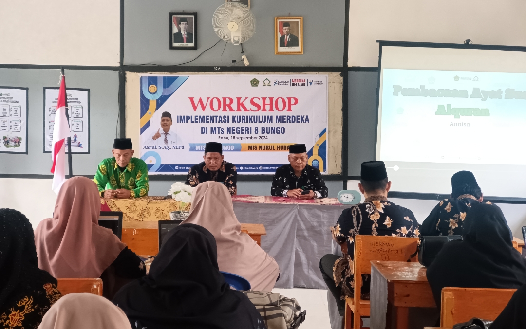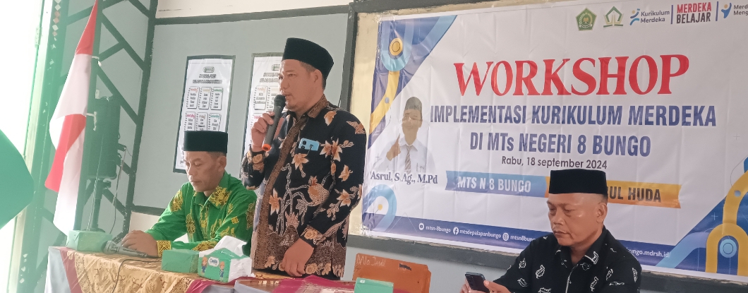 Bungo (Humas MTsN 8 Bungo) -- Madrasah Tsanawiyah Negeri (MTsN) 8 Bungo mengadakan Workshop Implementasi Kurikulum Merdeka yang ditempatkan di MTsN 8 Bungo.