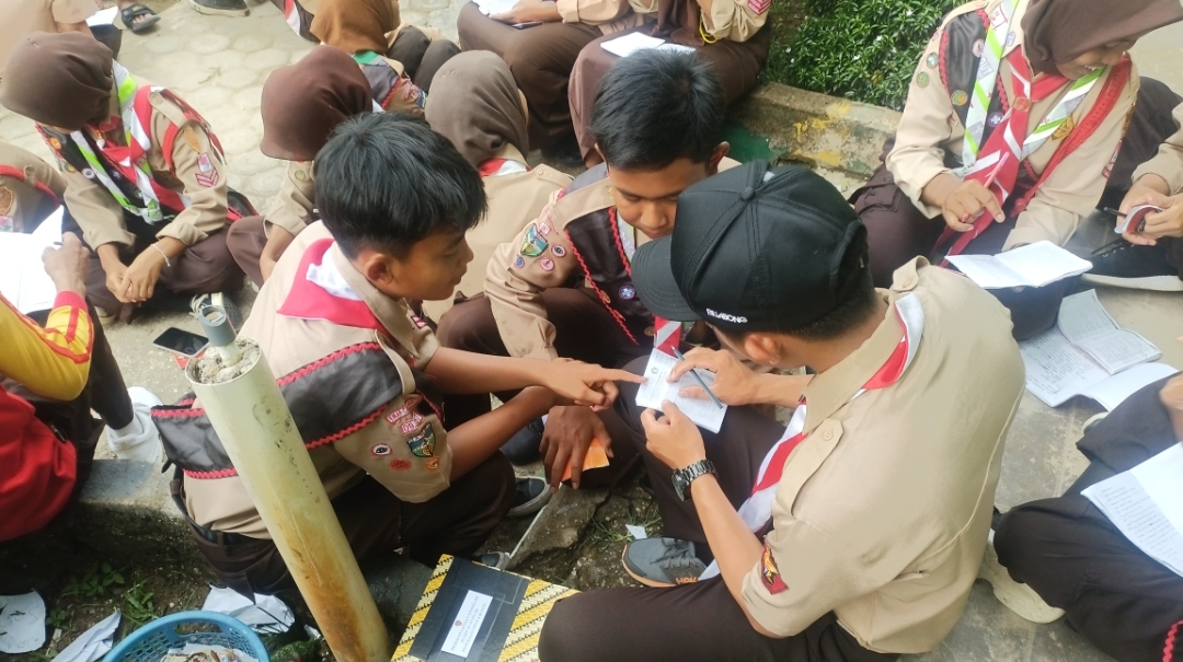 Setelah melaksanakan apel anggota Pramuka melakukan absensi dan iyuran rutin sebagai bentuk pengamalan daei buku Syarat kecakapan umum (SKU).
