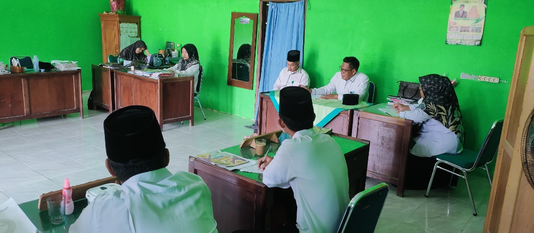 dengan dipimpin langsung oleh Kepala Madrasah Enjang, S.Ag dan didampingi oleh Para waka dan Kepala tata usaha dengan dihadiri oleh seluruh dewan guru dan tenaga kependidikan rapat di mulai pada pukul 11.00 wib.