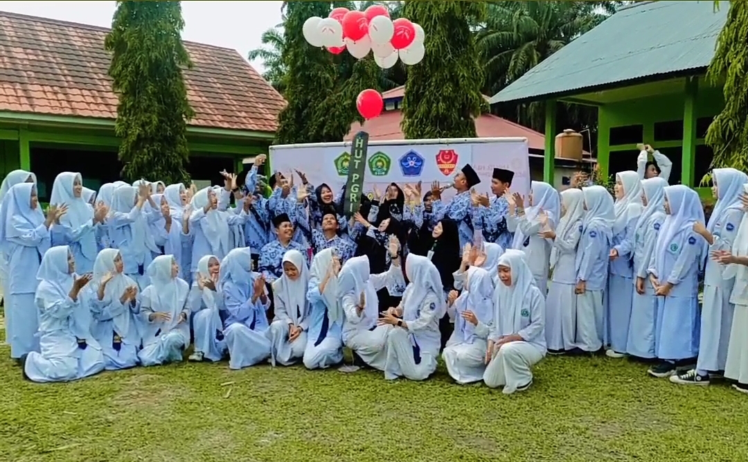 Diiringi tepuk tangan yang meriah, para guru dan siswa kompak melepaskan balon ke udara. Menjadi penyemangat dan membakar kebersamaan seluruh warga madrasah yang berada di lapangan.