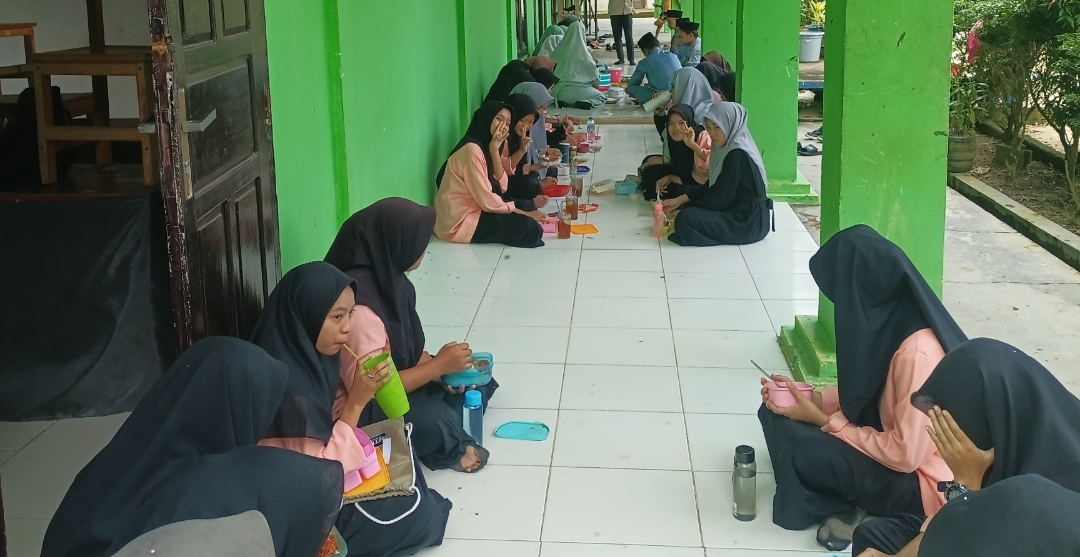 Selama kegiatan makan bersama, seluruh siswa dan guru saling berbagi makanan dan cerita, menciptakan suasana yang hangat dan penuh keakraban. Kegiatan ini tidak hanya menjadi momen untuk menikmati hidangan, tetapi juga untuk mempererat tali silaturahmi antara guru, staf, dan siswa-siswi.