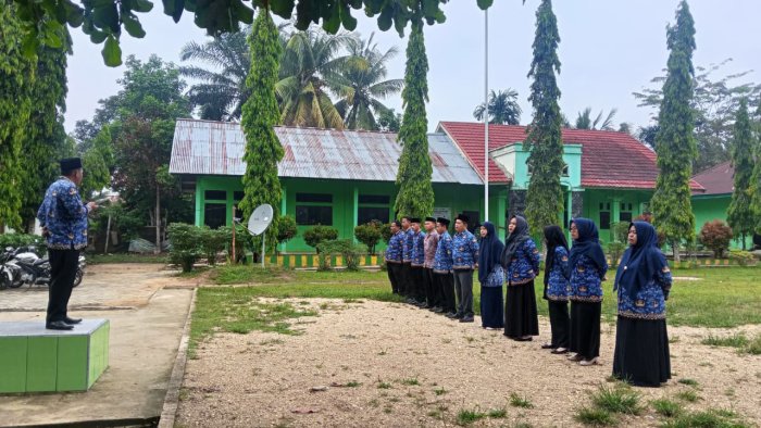 Apel kali ini dipimpin langsung oleh Kepala MTsN 8 Bungo, Bapak Enjang, S.Ag., yang bertindak sebagai pembina apel. Dalam amanatnya, beliau menekankan bahwa Hari Kesadaran Nasional yang diperingati setiap tanggal 17 merupakan saat yang tepat untuk mengingatkan kembali peran penting aparatur negara, khususnya tenaga pendidik dan kependidikan, dalam memberikan pelayanan terbaik kepada peserta didik dan masyarakat.