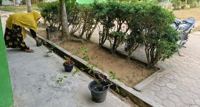 Salah satu bentuk nyata kepedulian tersebut terlihat dari kesungguhan para guru dalam merawat berbagai tanaman yang tumbuh di lingkungan madrasah. Bunga-bunga warna-warni, pohon peneduh, hingga tanaman hias tertata rapi di halaman sekolah, menciptakan pemandangan yang indah sekaligus memberikan kesejukan bagi seluruh warga madrasah.