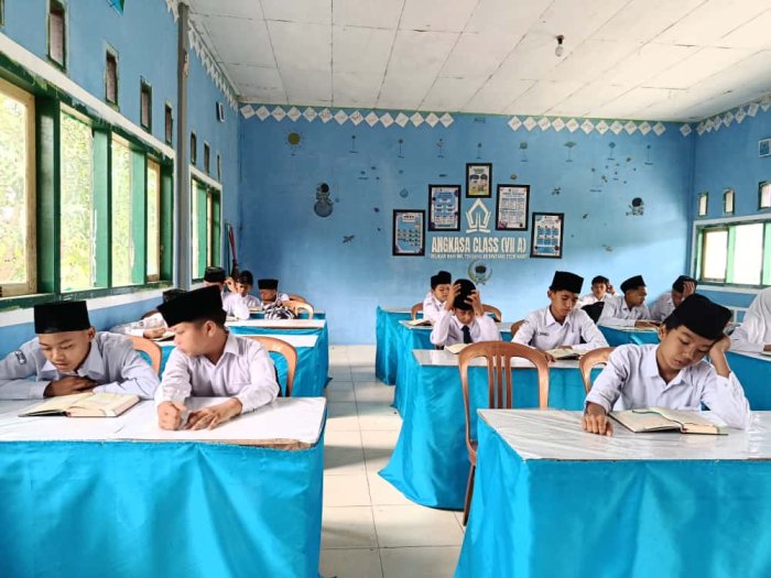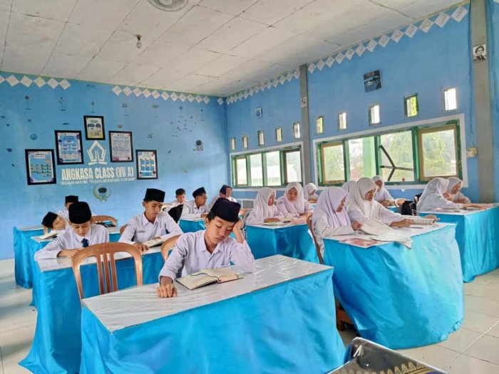 Sejak pukul 07.00 WIB, siswa/i telah berkumpul dengan tertib di ruang kelas masing-masing. Suasana hening menyelimuti seluruh area madrasah ketika lantunan ayat-ayat suci Al-Qur’an mulai dibacakan secara serempak. Dengan suara yang merdu dan penuh kekhusyukan, para siswa melafalkan kalam Ilahi di bawah bimbingan guru pendamping. Setiap huruf yang terucap seolah menghadirkan ketenangan batin, menyegarkan pikiran, dan memberi semangat baru untuk menuntut ilmu sepanjang hari.