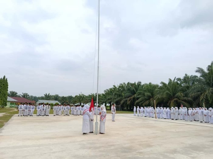 Bendera Merah Putih berkibar megah diiringi lagu “Indonesia Raya” yang dinyanyikan dengan lantang oleh seluruh peserta upacara. Momen itu menjadi simbol semangat nasionalisme yang terus ditanamkan kepada seluruh warga madrasah. Pembina upacara dalam amanatnya menyampaikan pentingnya menanamkan disiplin, tanggung jawab, dan rasa cinta tanah air sebagai bagian dari karakter siswa madrasah yang berakhlak mulia dan berjiwa nasionalis.