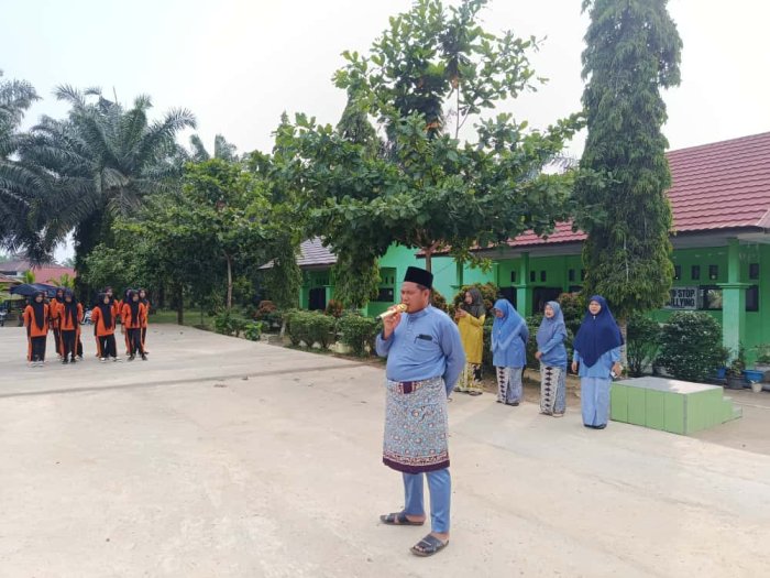 Bungo, Sabtu, 12 Oktober 2025 — Suasana pagi yang cerah menjadi saksi semangat seluruh keluarga besar MTsN 8 Bungo dalam mengikuti apel rutin setiap hari Sabtu. Lapangan madrasah tampak tertib dan penuh semangat ketika seluruh siswa berbaris rapi, siap menerima arahan dari Kepala MTsN 8 Bungo, Bapak Enjang, S.Ag, yang menjadi pembina apel pada pagi itu.