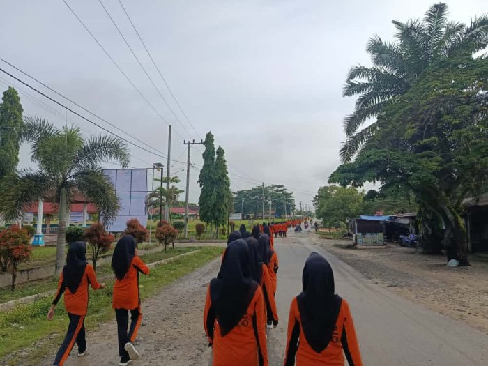 Tepat pukul 07.00 WIB, barisan peserta jalan sehat mulai bergerak meninggalkan halaman madrasah. Jalur yang dilalui melewati beberapa titik di sekitar lingkungan Dusun Gapura Suci, diiringi keceriaan para siswa yang saling bersenda gurau dan bernyanyi bersama. Di sepanjang perjalanan, para guru tampak turut mendampingi dan memberikan semangat kepada peserta agar tetap tertib dan menjaga kebersihan lingkungan.