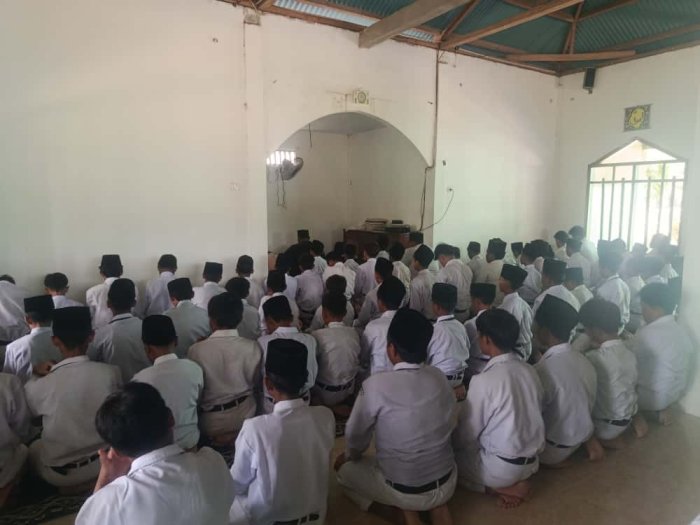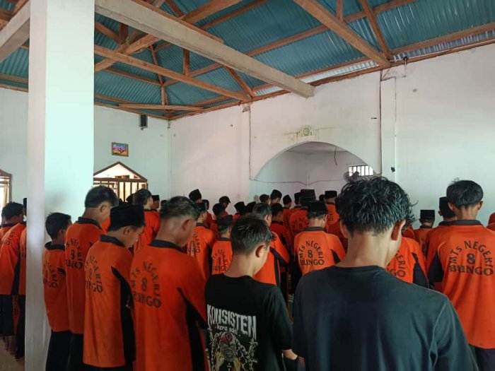 Sebelum pelaksanaan sholat, para guru terlebih dahulu mengingatkan pentingnya menjaga kekhusyukan dan kebersihan diri serta lingkungan sebelum menunaikan ibadah. Setelah sholat, kegiatan dilanjutkan dengan dzikir dan doa bersama, memohon kepada Allah SWT agar seluruh warga MTsN 8 Bungo senantiasa diberikan kesehatan, ilmu yang bermanfaat, serta keberkahan dalam setiap langkah.