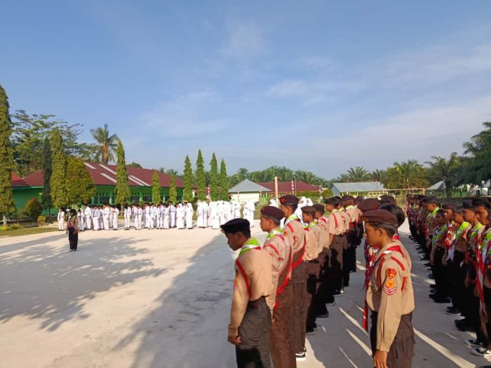 Bungo, 27 Oktober 2025 — Lapangan MTsN 8 Bungo pagi itu tampak berbeda dari biasanya. Seluruh anggota Pramuka Penggalang berkumpul dengan seragam lengkap dan semangat membara untuk mengikuti Upacara Pelantikan Pengurus Pramuka Gudep 09.167/09.168 MTsN 8 Bungo Periode 2025/2026. Kegiatan ini sekaligus dirangkaikan dengan pelantikan Pramuka Penggalang Ramu, Rakit, dan Terap, serta penyerahan penghargaan Bintang Tahunan bagi anggota yang berprestasi dan aktif.