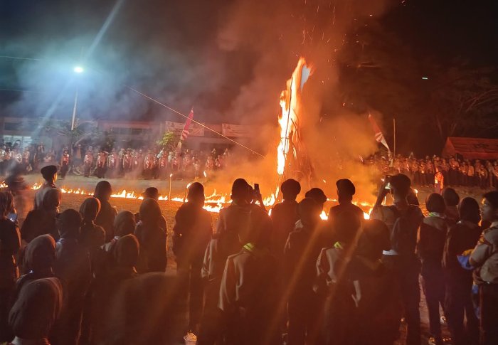 “Melalui unggun api ini, kita belajar bahwa api semangat harus terus berkobar dalam diri setiap pramuka. Jangan mudah padam oleh tantangan, tetap bersatu dan terus melangkah maju,” ujar Mindi Wulan memberikan motivasi kepada peserta.
