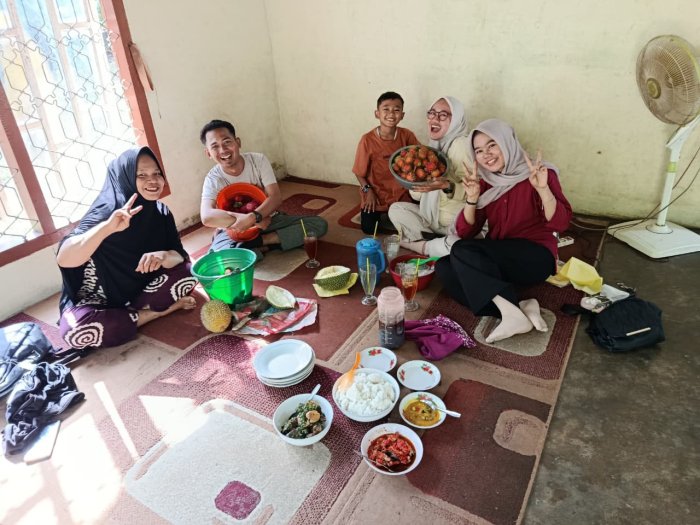 Menariknya, kunjungan ini juga bertepatan dengan musim panen buah. Para guru berkesempatan menikmati langsung hasil kebun berupa durian, manggis, dan rambutan yang tumbuh subur di sekitar rumah. Kebersamaan semakin terasa saat para guru turut merasakan nikmatnya buah segar hasil panen sendiri, menciptakan suasana kekeluargaan yang hangat dan penuh syukur.