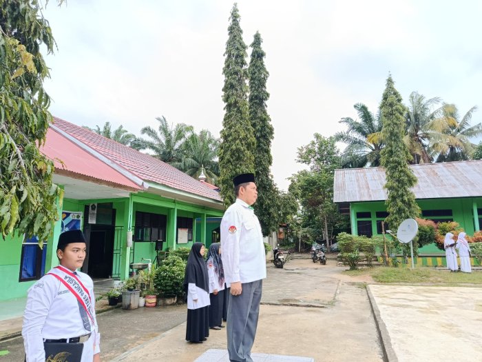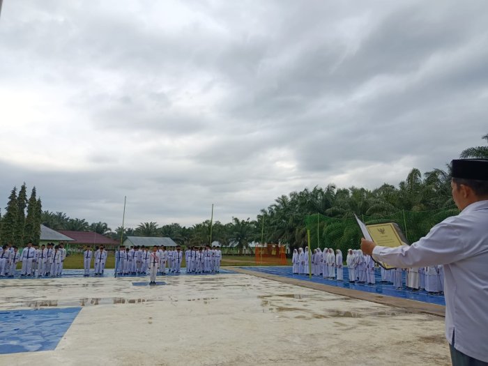 Bungo, 2 Februari 2026- Cuaca mendung yang menyelimuti langit MTsN 8 Bungo pada pagi hari tidak menjadi penghalang bagi seluruh warga madrasah untuk melaksanakan upacara bendera dengan tertib dan penuh semangat. Meski awan kelabu menggantung, upacara tetap berjalan lancar, khidmat, dan sukses berkat kesiapan petugas serta kedisiplinan seluruh peserta upacara.