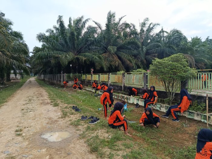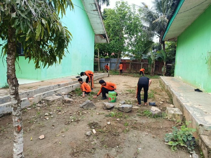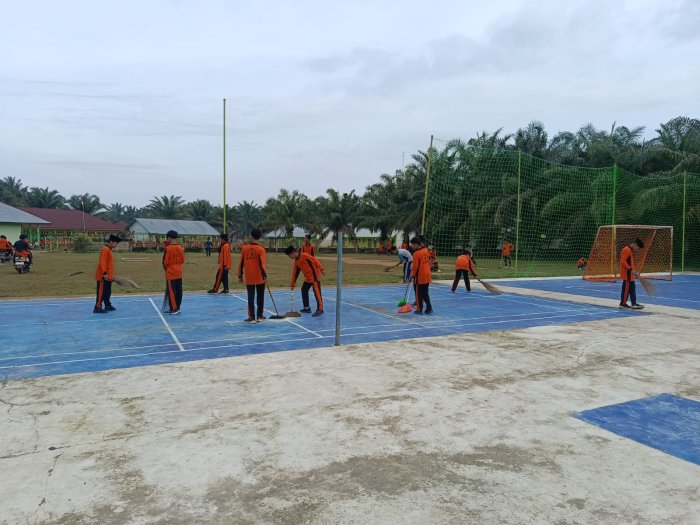 Para siswa tampak antusias mengikuti setiap kegiatan. Ada yang membersihkan rumput di sekitar lapangan, ada yang menyapu halaman dan selasar kelas, serta sebagian lainnya membantu guru menata peralatan lomba. Suasana kebersamaan terasa kental, diselingi canda dan tawa yang mencerminkan kekompakan keluarga besar MTsN 8 Bungo.
