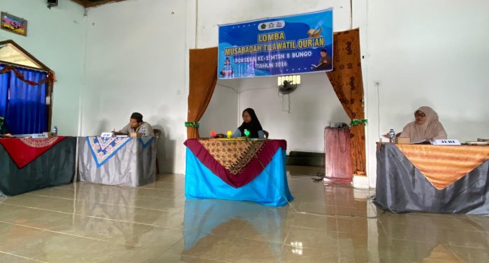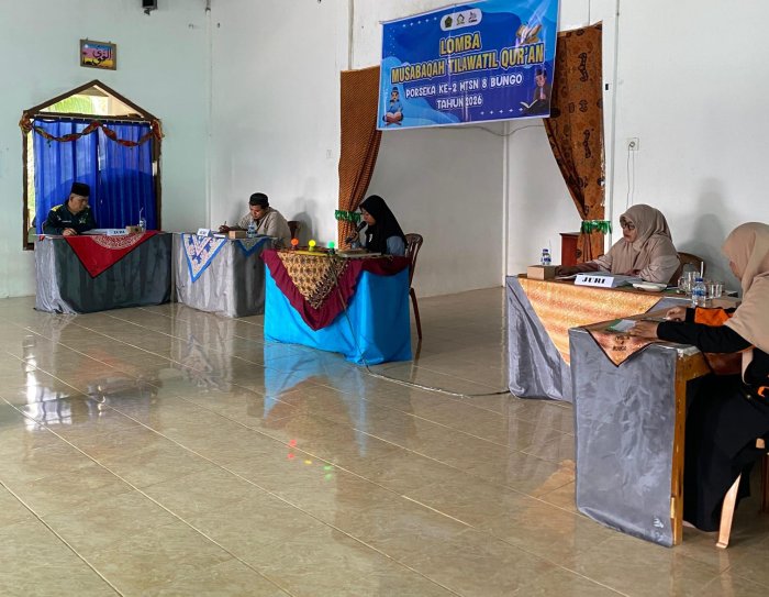 Bungo, 11 Februari 2026 — Suasana religius dan penuh semangat mewarnai pelaksanaan Lomba Musabaqah Tilawatil Qur’an (MTQ) dalam rangkaian kegiatan PORSEKA Ke-2 Tahun 2026 yang diselenggarakan di MTsN 8 Bungo. Kegiatan ini berlangsung dengan tertib, lancar, dan penuh khidmat, sekaligus menjadi ajang pembinaan karakter serta peningkatan kecintaan peserta didik terhadap Al-Qur’an.