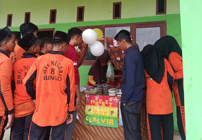 “Kami mengucapkan terima kasih atas kehadiran siswa dan guru MTsN 8 Bungo. Market Day ini kami rancang sebagai sarana pembelajaran praktik bagi siswa agar mereka mengenal dunia usaha secara langsung. Kehadiran tamu dari MTsN 8 Bungo tentu menambah semangat anak-anak kami dalam berjualan dan belajar mandiri,” tuturnya.