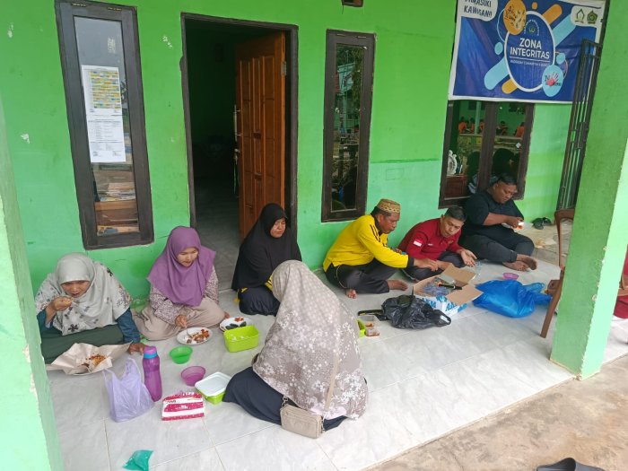Setelah tausiyah selesai, kegiatan dilanjutkan dengan makan bersama. Seluruh siswa dan guru duduk berdampingan, menikmati hidangan sederhana yang telah disiapkan. Momen ini menciptakan suasana kekeluargaan yang hangat, memperlihatkan kebersamaan tanpa sekat antara siswa dan guru. Tawa dan canda ringan menghiasi jalannya makan bersama, menambah semarak acara sekaligus memperkuat rasa persaudaraan di lingkungan MTsN 8 Bungo.