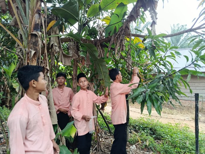 Beliau juga menambahkan bahwa kegiatan praktikum seperti ini sangat penting untuk menumbuhkan keterampilan, ketelitian, serta rasa peduli siswa terhadap lingkungan dan tanaman. Dengan memanfaatkan pohon mangga dan rambutan yang ada di lingkungan sekolah, siswa dapat belajar sekaligus mengenal potensi tanaman yang bermanfaat bagi kehidupan sehari-hari.