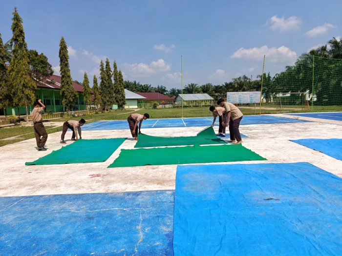 Kegiatan gotong royong ini menjadi salah satu bentuk nyata kebersamaan dan kepedulian para siswa dalam menyukseskan agenda Ramadhan di madrasah. Dengan penuh tanggung jawab, para panitia bekerja sama membersihkan lapangan dari sampah dan daun kering, merapikan area yang akan digunakan, serta menata perlengkapan yang dibutuhkan untuk kegiatan buka bersama.