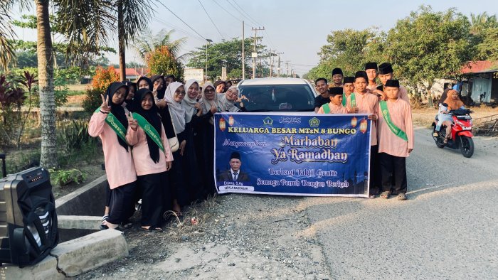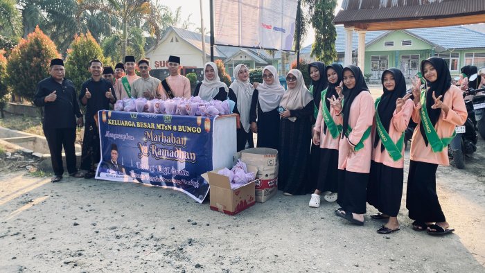 MTsN 8 Bungo terus menunjukkan komitmennya dalam menyelenggarakan berbagai kegiatan positif yang tidak hanya berfokus pada kegiatan akademik, tetapi juga membangun karakter dan kepedulian sosial siswa. Salah satu kegiatan yang selalu dinantikan setiap tahunnya adalah kegiatan berbagi takjil kepada masyarakat. Program ini menjadi bukti nyata bahwa madrasah tidak hanya menjadi tempat menuntut ilmu, tetapi juga tempat menanamkan nilai-nilai kebaikan kepada seluruh warga madrasah.