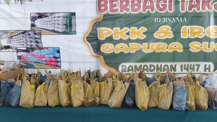 Kegiatan yang menjadi salah satu program unggulan masyarakat Dusun Gapura Suci ini tidak hanya diisi dengan kegiatan mengaji bersama, tetapi juga dilanjutkan dengan kegiatan berbagi takjil kepada para peserta ngaos. Takjil tersebut merupakan sedekah dari seorang hamba Allah yang ingin berbagi kebahagiaan di bulan suci Ramadhan. Suasana kebersamaan terasa begitu hangat, di mana para peserta dengan penuh khidmat mengikuti lantunan ayat-ayat suci Al-Qur�an sambil menunggu waktu berbuka puasa.