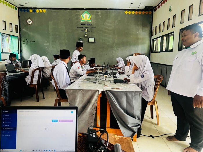 Bungo, 8 April 2026 — Pelaksanaan Tes Kompetensi Akademik (TKA) di MTsN 8 Bungo terus berlangsung dengan tertib dan lancar. Memasuki hari kedua, tepatnya pada sesi ketiga, para siswa mengikuti ujian dengan penuh semangat pada mata pelajaran Bahasa Indonesia, Literasi, dan Survei Lingkungan Belajar (Sulingjar).